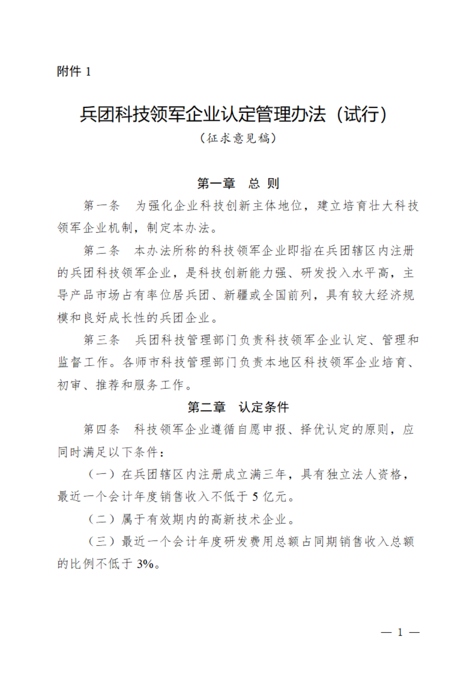 为强化企业科技创新主体地位,建立培育壮大科技领军企业机制,健全科技型企业梯度培育体系,兵团科技局研究起草了《兵团科技领军企业认定管理办法(试行)(征求意见稿)》《兵团科技型企业梯度培育实施方案(征求意见稿)》,现向社会公开征求意见。公众可将意见发送至ggc1508@teammail.cn,意见反馈截止日期为2025年1月31日。