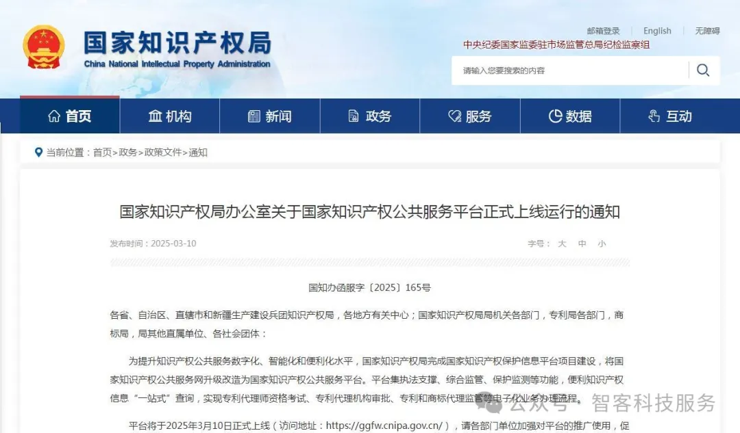 平台将于2025年3月10日正式上线(访问地址:https://ggfw.cnipa.gov.cn/),请各部门单位加强对平台的推广使用,促进创新主体、社会公众及各级知识产权管理部门和服务机构知晓并实际使用。