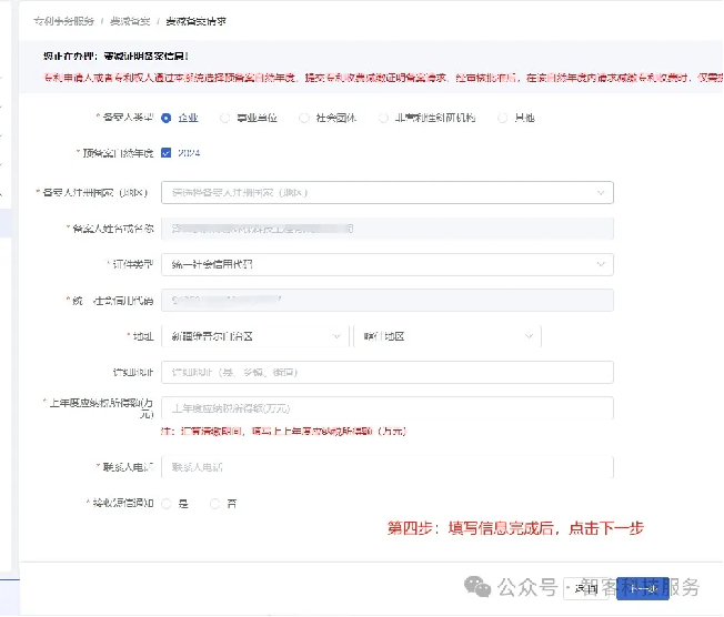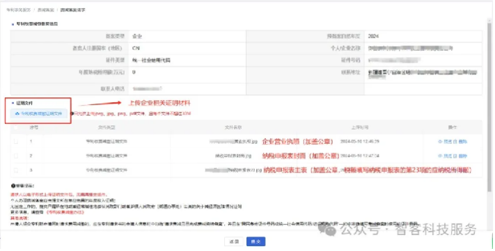 第五步:点击“专利收费减缴证明文件”按钮,上传电子形式的上一年度收入证明。点击右下角“提交”,完成费减备案业务办理。